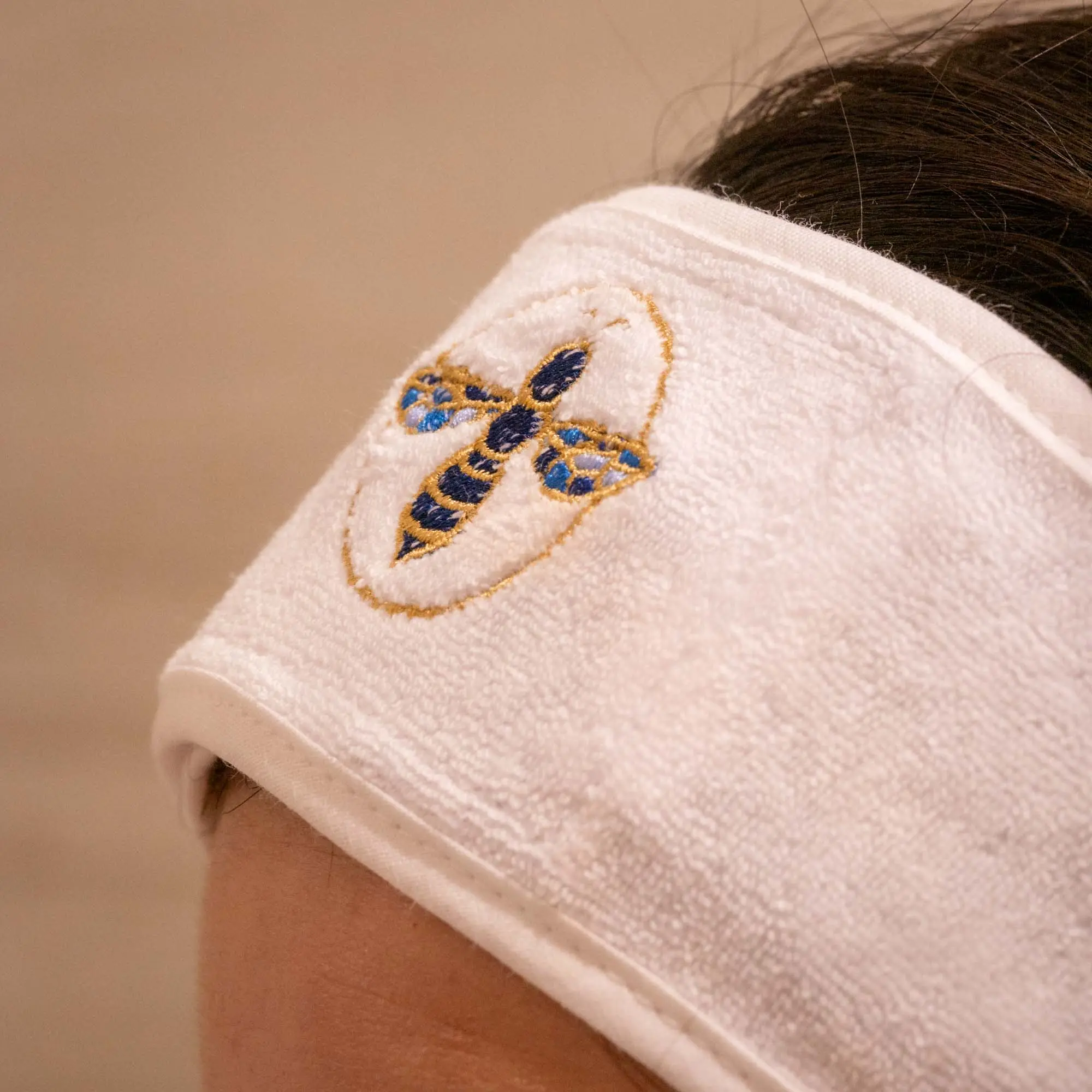 Un bandeau pour cheveux doux et pratique, fait main et brodé, idéal pour dégager le visage lors du démaquillage ou de la routine de soin.