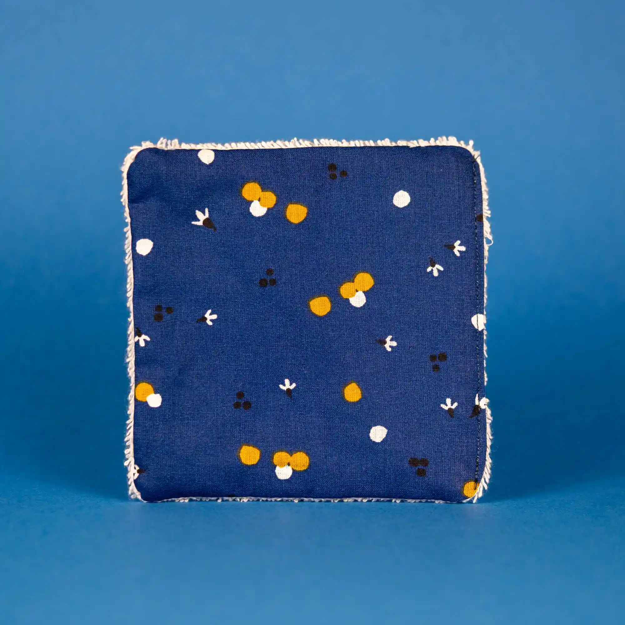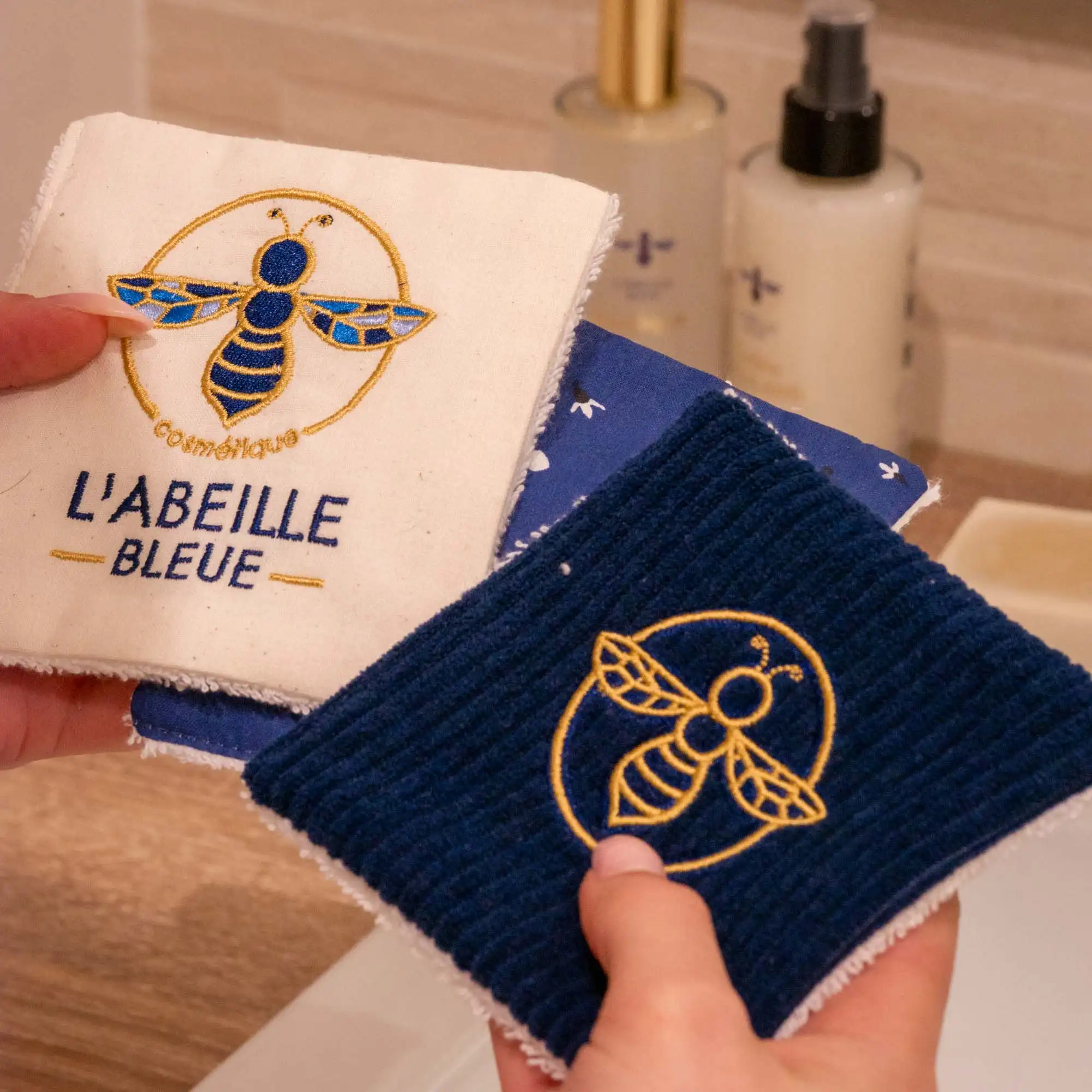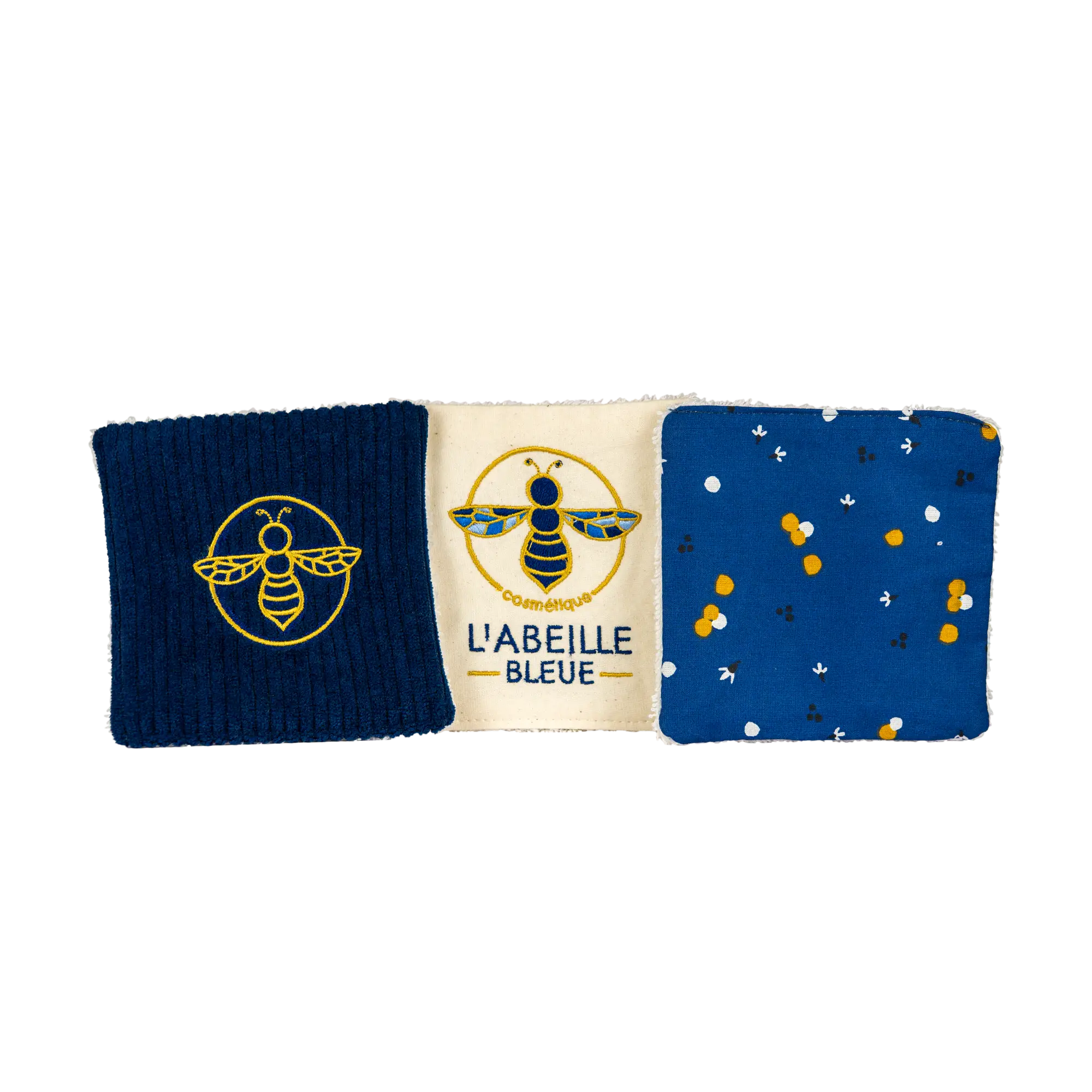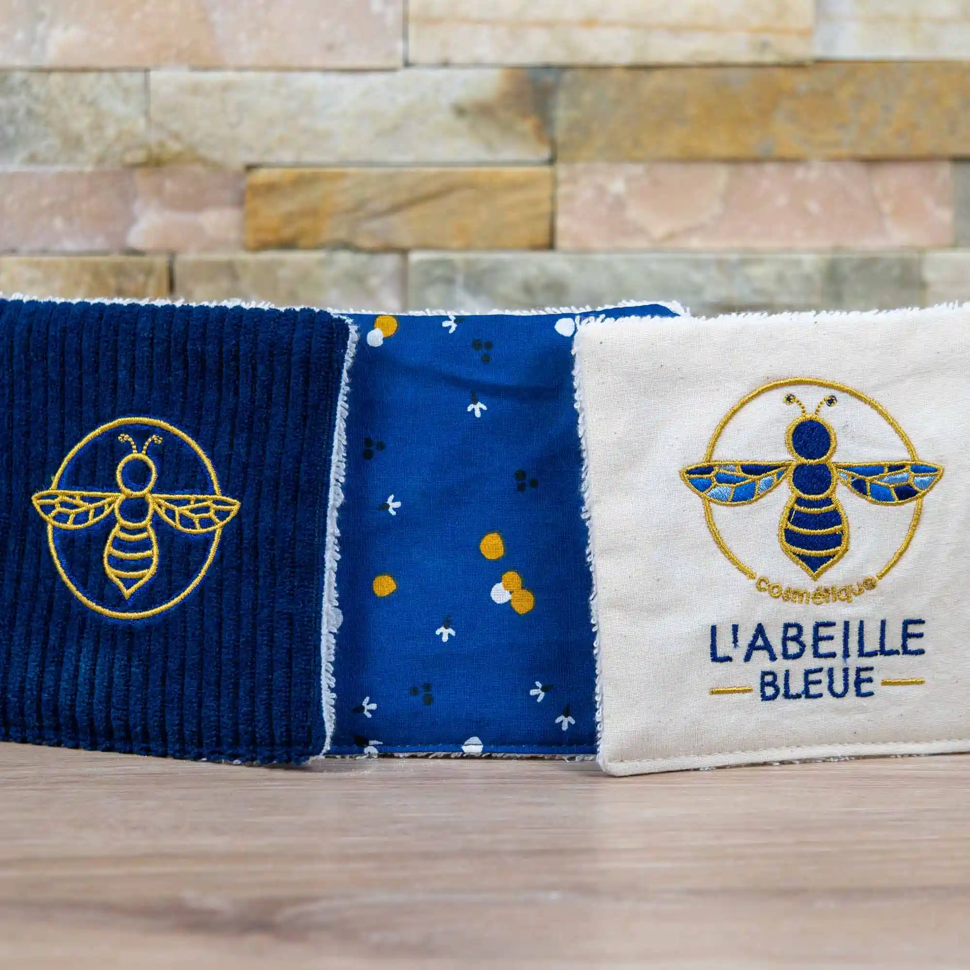Ce lot de trois cotons réutilisables l’Abeille Bleue s’inscrit dans une démarche responsable et artisanale, fidèle aux valeurs d’une fabrication locale, transparente et respectueuse du vivant. Chaque coton est réalisé à la main aux Ateliers d’O3, entreprise adaptée engagée, où le savoir-faire humain occupe une place centrale.