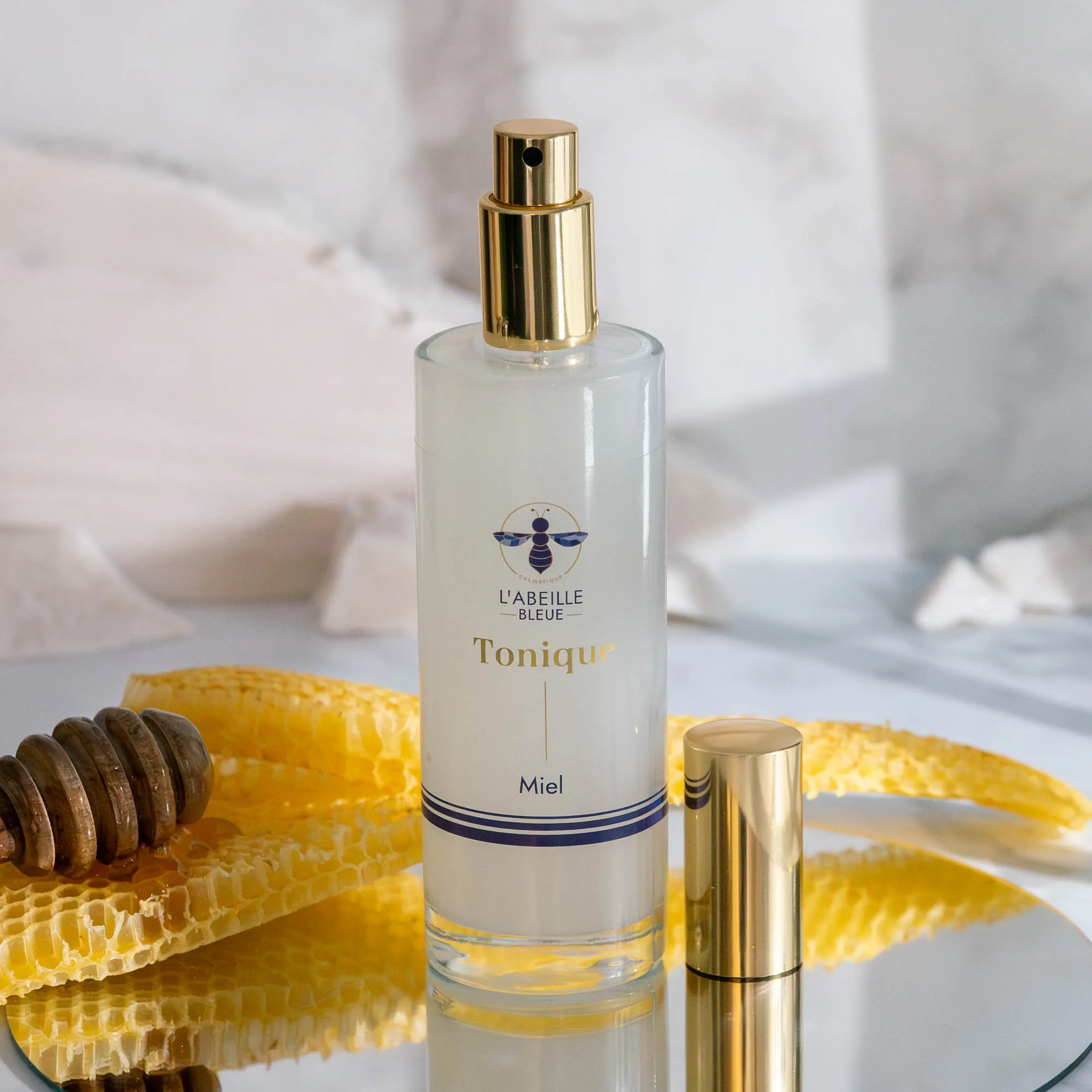 Le miel, ingrédient central de ce tonique, est intégré pour évoquer l’univers de la ruche et la richesse des matières premières issues du travail des abeilles. Il participe à donner au produit sa teinte douce et son caractère unique. L’huile essentielle de lavandin (Lavandula Hybrida Oil) vient compléter cette composition, apportant une note aromatique subtile, à la fois florale et légèrement herbacée.